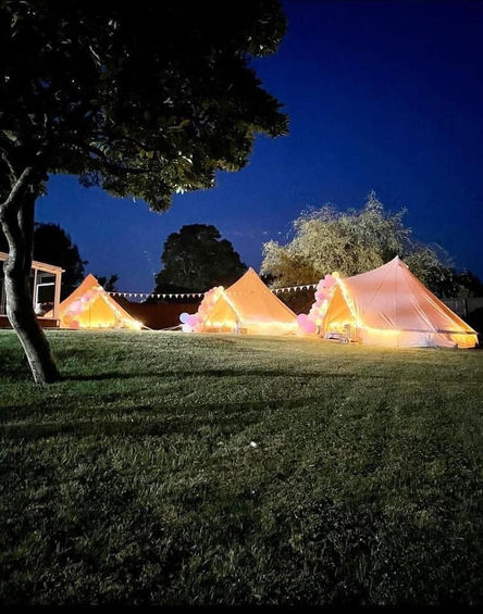 Our bell tents provide the perfect setting for home-based celebrations and family events. Whether you're hosting a garden party, an unforgettable sleepover, or a special birthday celebration, our stylish tents create a cosy and elegant atmosphere. Ideal for outdoor dining experiences and family gatherings, they offer a unique and comfortable space for guests to relax and enjoy the occasion.